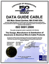 Effective August 1, 2009 Data Guide Cable’s quality management system has been certified to ISO 9001:2008. The quality management system is applicable to the design, manufacture & distribution of electronic & electrical wire & cable products.